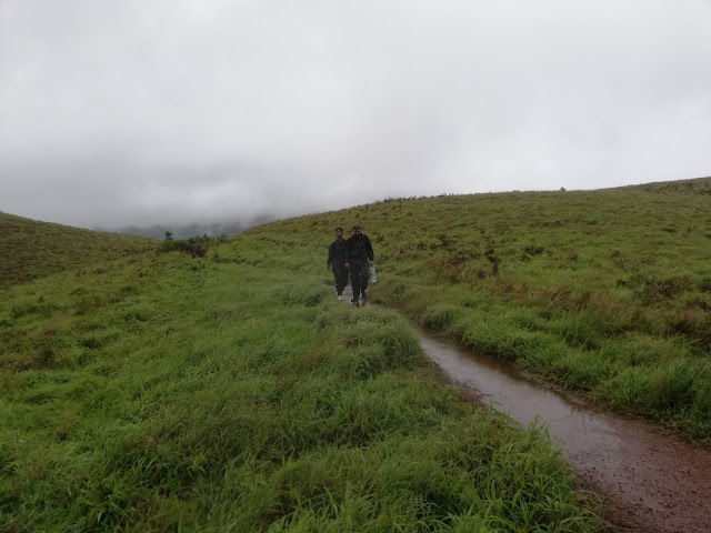 चांगलीच धाप लागत होती. त्यात सगळी वाट प्रचंड निसरडी झाली होती. टोचणाऱ्या पावसापेक्षा आता पुढे टाकलेलं पाउल एका जागी स्थिर राहतंय की नाही याची काळजी जास्त होती. आधीच एवढं अंतर चालून थकलेले पाय आता चढताना बोलू लागले होते. अजून ३ किमी अंतर बाकी होतं. ट्रेक लीडर सगळ्यांना प्रोत्साहित करत होता. पण कुद्रेमुख आता खरा इंगा दाखवत होतं. ग्रुपमधल्या दोघांनी तिथूनच माघार घेतली. ओंतीमारापाशी जाऊन थांबतो असं म्हणून ते तिथूनच मागे फिरले. आम्ही मात्र उरलीसुरली उमेद एकवटून वर चढू लागलो. म्हणता म्हणता ती खडी चढण संपली. शेवटचा गडी वर पोहोचला आणि आम्ही सगळ्यांनीच एकमेकांचं अभिनंदन केलं. शिखर अजून अर्धा किलोमीटर लांब होतं. पण वाट मात्र सपाट होती.