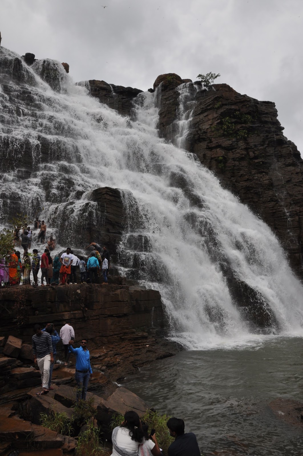 आम्ही आत शिरलो त्या गेटच्या उजव्या बाजूने एक वाट खाली उतरत होती. आम्ही तिथून खाली उतरू लागलो. उजव्या हाताला डोंगरकडा आणि डाव्या हाताला गर्द झाडीने व्यापलेली दरी अशी ती वाट होती. थोड्या अंतरातच पायऱ्या लागल्या. दरीत घुमणारा धबधब्याचा आवाज आता अजूनच तीव्र झाला होता. काही अंतरातच पायऱ्यांची ती वाट एका मोकळ्या बिंदूवर आली. इथून ती वाट यू-टर्न घेऊन आणखी खाली उतरत होती. त्या बिंदूवर येऊन पोहोचलो आणि धबधब्याचा तो प्रचंड ओघ नजरेच्या टप्प्यात आला. वरून दिसलेला पाण्याचा तो प्रवाह हाच का असा प्रश्न थोडा वेळ पडला. गुरुत्वाकर्षणाच्या बलाने त्या प्रवाहाचा आवेग कैक पटींनी वाढला होता. त्या चुनखडी खडकाला पडलेल्या पायऱ्या जणू त्या शुभ्र धुमाळांना खेळवत होत्या. तिथून काही फोटो काढून आम्ही अजून खाली उतरलो.