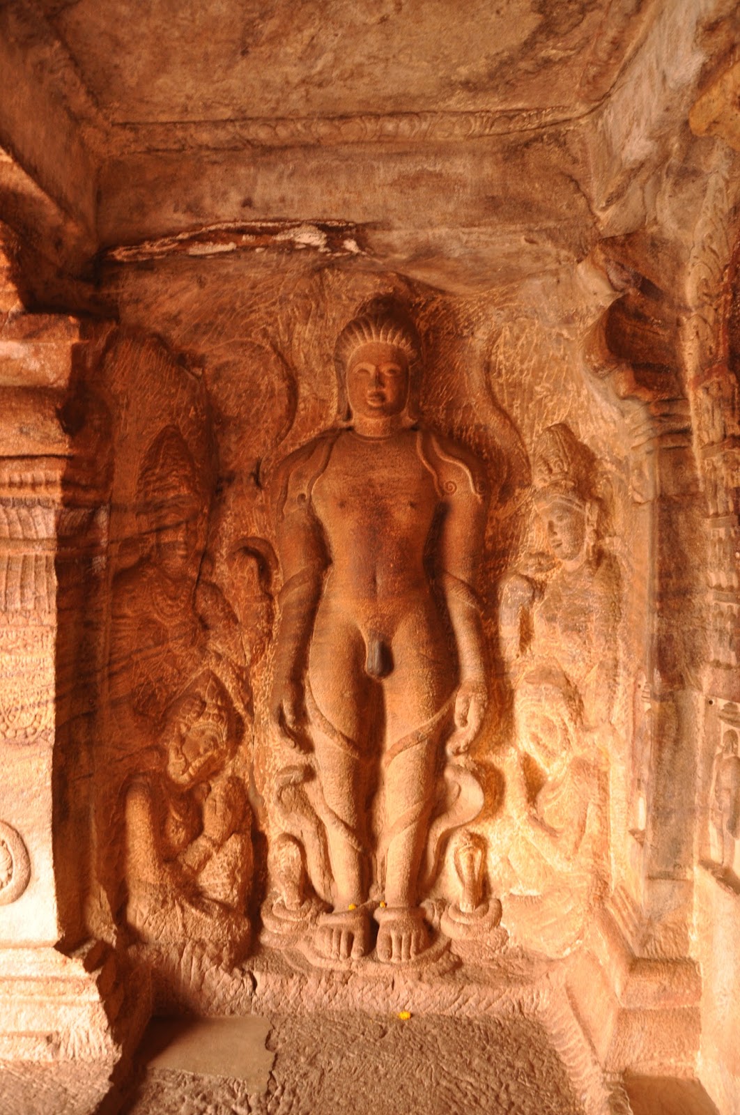 चौथ्या गुंफेबाहेरच्या प्रांगणात जरा शांतता होती. अगस्त्य तीर्थ आणि पलीकडचे भूतनाथ मंदिर इथून फारच विलोभनीय दिसत होते. मी गुंफेत शिरलो. अखंड पहाडातून कोरून बनवलेली ती गुंफा तशी प्रशस्त होती. आतल्या खांबांवर, छतावर, सगळीकडे नाजूक कोरीवकाम केलेले होते. मंडपातून आत शिरताच डाव्या बाजूला नजरेस पडली तेविसावे तीर्थंकर पार्श्वनाथ यांची मूर्ती. मूर्तीच्या डोक्यावर पंचमुखी आदिशेष दिसत होता. त्याच्याच समोरच्या बाजूला निर्वाणावस्था प्राप्त झालेला बाहुबली दिसत होता. गुंफेच्या गर्भगृहात चोविसावे तीर्थंकर वर्धमान महावीर ध्यानमग्न अवस्थेत दिसत होते. गुंफेतल्या भिंतींवर इतर तीर्थंकरांच्या आकृती दिसत होत्या. या गुंफेत जैन धर्मीय कदाचित निवास करत असावेत. एकंदरीतच गुंफेची रचना एखाद्या मंदिराच्या अंतर्गत रचनेसारखी होती. म्हणूनच या गुंफांना गुंफा मंदिरे म्हटले जात असावे. तिथून खाली उतरून मी तिसऱ्या गुंफेपाशी आलो. तिसरी गुंफा चौथ्या गुंफेपेक्षा जास्त मोठी होती. या गुंफेस महाविष्णू गुंफा म्हटले जाते. आत शिरल्या बरोबर अलंकृत खांब नजरेस पडले. समांतर उभ्या रेषांनी त्या खांबांना बहुमितीय आकार दिला होता. त्यांच्या वरच्या भागात देव-देवतांची शिल्पे कोरलेली होती. डाव्या हाताला महाविष्णूची विलोभनीय मूर्ती विराजमान झालेली दिसत होती. पंचमुखी आदिशेषाने याही मूर्तीच्या वर छत्र धरले होते. बाजूला गरुड आणि लक्ष्मी यांच्या आकृती दिसत होत्या. त्याच्याच समोरच्या बाजूला विजय नरसिंहाची मूर्ती आवेशात उभी होती. हिरण्यकपशूचा वाढ केल्यानंतरचा विजयी उन्माद त्याच्या चेहऱ्यावर दिसत होता. याच गुंफेत प्रणयाराधानेत मग्न जोडप्यांच्या काही मूर्ती दिसत होत्या. त्यांचे पोशाख, अलंकार, भावमुद्रा सारे काही त्या लाल पाषाणातून हुबेहूब साकारले होते.