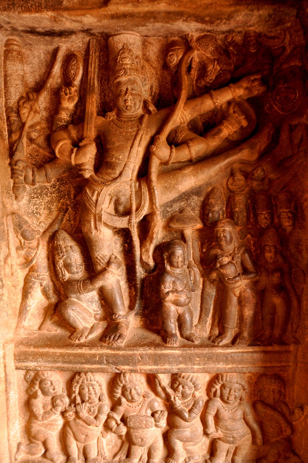 दुसऱ्या गुंफेत विष्णूचे काही अवतार आणि त्यांच्या संदर्भातल्या कथा साकारल्या होत्या. बळीराजाच्या मस्तकावर पाय ठेवणारा वामन हे त्यातले लक्षवेधी शिल्प होते. त्यासोबत वराह अवतारही साकारला होता. या गुंफेत मुख्य मूर्ती मात्र नव्हती. पहिल्या गुंफेपर्यंत पोहोचलो आणि सुरक्षारक्षकाने शिटी वाजवत सगळ्यांना बाहेर काढायला सुरुवात केली. गुंफा बंद व्हायची वेळ झाली होती. जमेल तेवढे पाहून घेण्याच्या उद्देशाने मी आत शिरलो. ही गुंफा शंकराला समर्पित होती. सर्वात जुनी आणि सगळ्यात मोठी असलेली ही गुंफा गर्भगृह, सभा मंडप, आणि मुखमंडप अशा तीन भागांमध्ये विभागलेली होती. एका बाजूला तांडवनृत्य करणारा अठरा हातांचा शंकर पाषाणातून घडवलेला होता. त्याच्या मागील दोन हातांत एक नाग, तर इतर हातांत डमरू आणि इतर वाद्ये होती. त्याच्या शेजारी गणेश व इतर वादक दिसत होते. नृत्यमग्न शंकराची ती मूर्ती नटराज म्हणून ओळखली जाते. अत्यंत कौशल्याने घडवलेली ही मूर्ती भारतीय अश्म-छेद स्थापत्यकलेचा उत्तम नमुना समजली जाते. याच गुंफेत महिषासुरमर्दिनी, अर्धनारीश्वर, आणि गजवृषभ अशी इतर शिल्पेही होती. आता अंधार पडू लागला होता. आधीच अंधारलेल्या त्या गुंफामध्ये अजून गडद अंधार हळूहळू उतरत होता. त्यामुळे फोटो काढता येणे अशक्य झाले होते. बाहेरचा गलका वाढतच चालला होता. शेवटी मी गुंफांची भेट आवरती घेतली आणि खाली उतरलो. बदामीतल्या सगळ्यात महत्त्वाच्या जागेला पूर्ण न्याय देऊ शकलो नाही याची काहीशी हुरहूर मनात दाटली होती. मात्र पाषाणात कोरलेल्या एवढ्या सुंदर मूर्ती पाहून नजर संपृक्त झाली होती. उद्या जमलं तर परत येईन असा विचार करून मी हॉटेलवर परतलो.