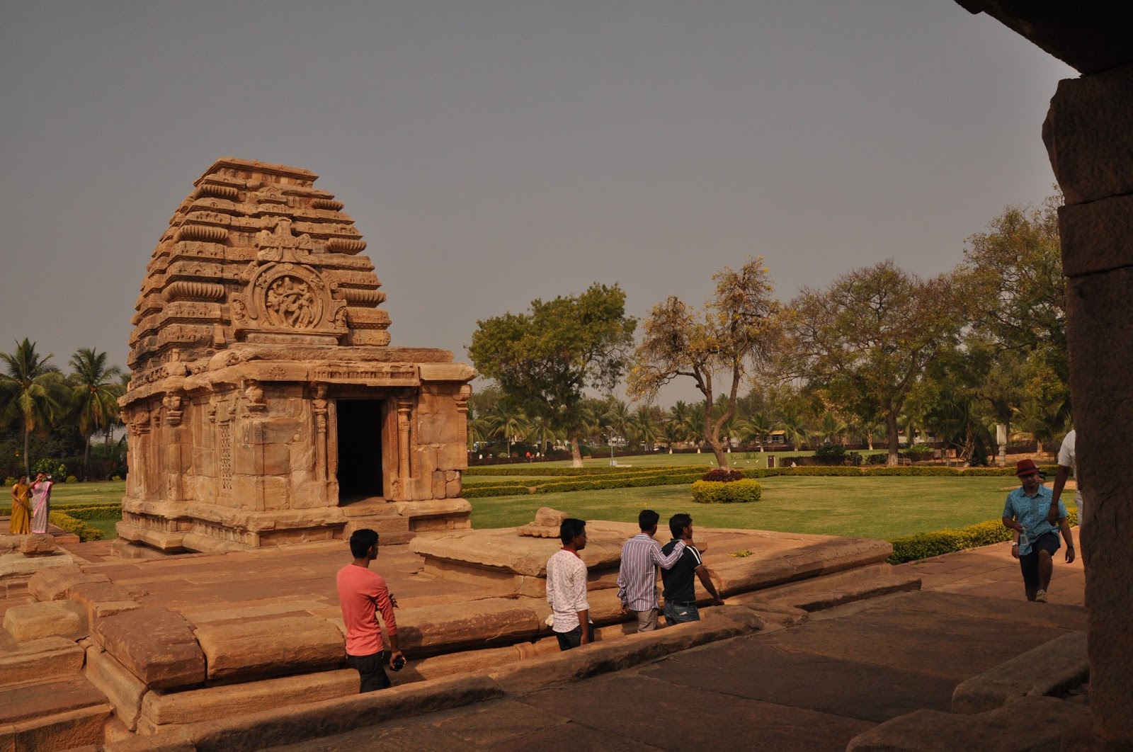 अर्ध्या-पाऊण तासांत आम्ही पट्टदकलला पोहोचलो. पट्टदकल हे बदामीसारखेच एक प्राचीन शहर. ग्रीक तत्त्ववेत्ता टॉलेमी याच्या Geography या इसवी सनाच्या दुसऱ्या शतकात लिहलेल्या पुस्तकात या शहराचा उल्लेख सापडतो. पट्टदकल या नावाचा शब्दशः अर्थ होतो राज्याभिषेकाचा दगड. चालुक्य राजांनी सातव्या ते आठव्या शतकांच्या दरम्यान मलप्रभा नदीच्या पश्चिम किनाऱ्यावर राज्याभिषेकादि शाही समारंभांसाठी हा मंदिरसमूह बांधला. उत्तरोत्तर विकसित होत गेलेल्या चालुक्य स्थापत्यशैलीचे अत्युच्च स्वरूप या मंदिरांत बघायला मिळते. या समूहात एकूण ९ मंदिरे आहेत. सारी मंदिरे पूर्वाभिमुख असून शिवाला समर्पित आहेत. दक्षिण भारतीय ‘द्राविड’ शैली आणि उत्तर भारतीय ‘नागर’ शैली यांचे सुरेख मिश्रण या मंदिरांत दिसून येते. हा समूह युनेस्कोने जागतिक वारसास्थळ म्हणून घोषित केलेला आहे. प्रथमदर्शनी तरी पट्टदकल एक टिपिकल भारतीय खेडेगाव वाटत होते. आपण बरोबर जागी आलोय की नाही असा प्रश्न पडावा इतके ते गाव लहान आणि अविकसित वाटत होते. मात्र मंदिरांचा परिसर नजरेस पडला आणि इथे काहीतरी वेगळीच दुनिया वसली आहे की काय असा आभास झाला. अपेक्षेनुसार इथेही भारतीय पुरातत्व विभागाने मंदिरांचा परिसर कुंपणाने संरक्षित केला होता. मंदिरांच्या आजूबाजूला सुंदर बागही फुलवली होती. मी तिकीट काढून आत शिरलो.