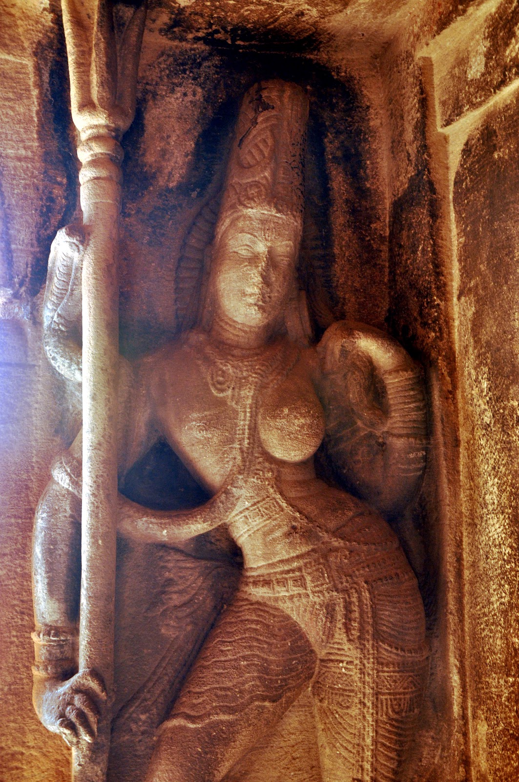 ऐहोळेमधील मुख्य मंदिरसमूहापासून या गुंफा जरा आडवाटेवर आहेत. मात्र बदामीमधील गुंफा मंदिरांसारख्या या गुंफादेखील भारतीय छेदाश्म स्थापत्यकलेचा उत्तम नमुना मानल्या जातात. यातील मुख्य गुंफेपाशी माझ्या बाईकचालकाने मला सोडले. इथे फारसे पर्यटक नव्हते. कलत्या उन्हात इथला शांत परिसर प्रसन्न वाटत होता. पायऱ्या चढून आत शिरलो. समोरच गर्भगृहात भलेमोठे शिवलिंग दिसले. बदामीमधल्या गुंफांपेक्षा ही गुंफा तशी लहान होती. शिवाय मंडपात इतर स्तंभही दिसत नव्हते. तितक्यात चालकाने माझे लक्ष चारही बाजूंच्या भिंतीवर साकारलेल्या शिल्पांकडे वेधले. तिथल्या अंधारात स्पष्ट काही दिसत नव्हते म्हणून मी विजेरी काढली आणि एक-एक शिल्प निरखू लागलो. डाव्या बाजूच्या भिंतीवर होते नटराजाचे महाकाय शिल्प. अठरा हातांचा नृत्यमग्न शंकर फारच सुबक घडवला होता. त्याच्या शेजारी गणपती आणि पार्वती दिसत होते. हे शिल्प बदामीमधल्या एका गुंफेशी साधर्म्य साधणारे होते. प्रवेशद्वाराच्या आतल्या बाजूलाही देखणी शिल्पे होती. एका बाजूला हरी-हर अशी जोडी होती तर दुसरीकडे अर्धनारीश्वराचे शिल्प होते. एवढ्या अपुऱ्या प्रकाशात ही शिल्पे कशी काय घडवली असतील याचेच मला राहून राहून आश्चर्य वाटत होते. तिथे थोडी फोटोग्राफी करून मी बाहेर पडलो. या समुहातली दुसरी गुंफा जैन तीर्थंकरांची होती. बदामीमधल्या चौथ्या गुंफेप्रमाणेच जैन तीर्थंकर व त्यांच्या जीवनातले प्रसंग तिथे घडवले होते. वैष्णव, शैव, आणि जैन विचारांचा वैशिष्ट्यपूर्ण संगम या मंदिरांमध्ये दिसून येतो. त्या काळात प्रचलित असलेला धर्मविचार आणि वेगवेगळ्या दैवतांप्रती असलेली समाजाची आदराची भावना धर्मनिरपेक्षतेच्या एका वेगळ्याच आयामाचे दर्शन घडवते.