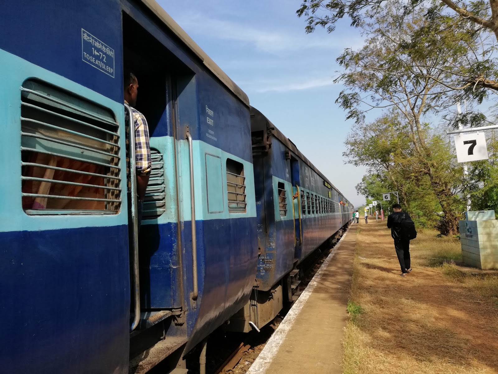 | कुठल्याशा छोट्या स्टेशनात थांबलेली ट्रेन |