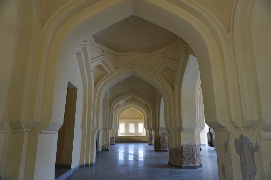 Right next to the gate, a signboard pointed to Gagan Mahal. I followed the directions and arrived at the palace, which once housed the king’s harem. It’s a two-story structure featuring foliated arches on the ground floor. The architecture borrows heavily from the Lodi architecture of New Delhi. To me, it looked strikingly similar to the Lotus Palace in Hampi, which served the same purpose. Although the Gagan Mahal was renovated by the ASI ten years ago, I could already see tourist graffiti marring the walls. Beyond the decorative arches and ceilings, there wasn’t much to hold one’s attention. I snapped a few pictures and headed out.