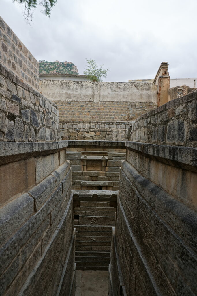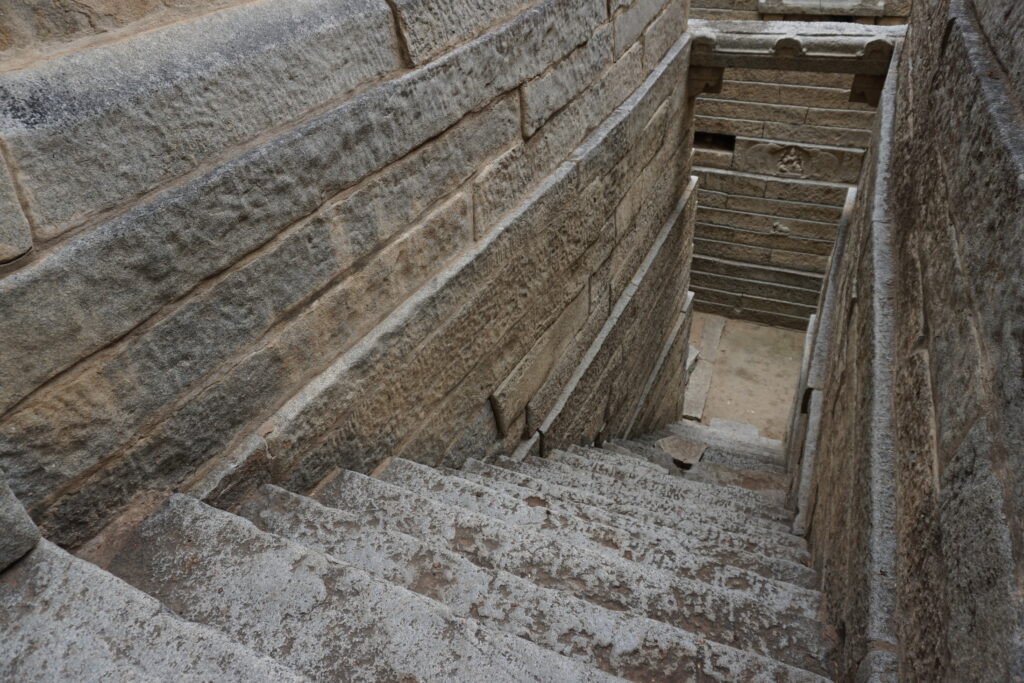 On the opposite side of the narrow road was a step well. The entrance of the well was shaped like Nandi. The well itself was about 10 meters deep, and most of the steps were still intact, though there was no water inside. However, I noticed a minor drop in temperature. When I touched the stone walls, they felt considerably cold. The spring might still be active. Perhaps with some restoration, the well could become full of water again!