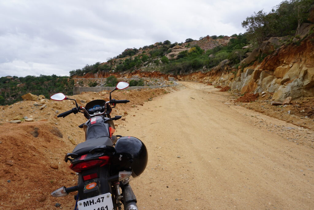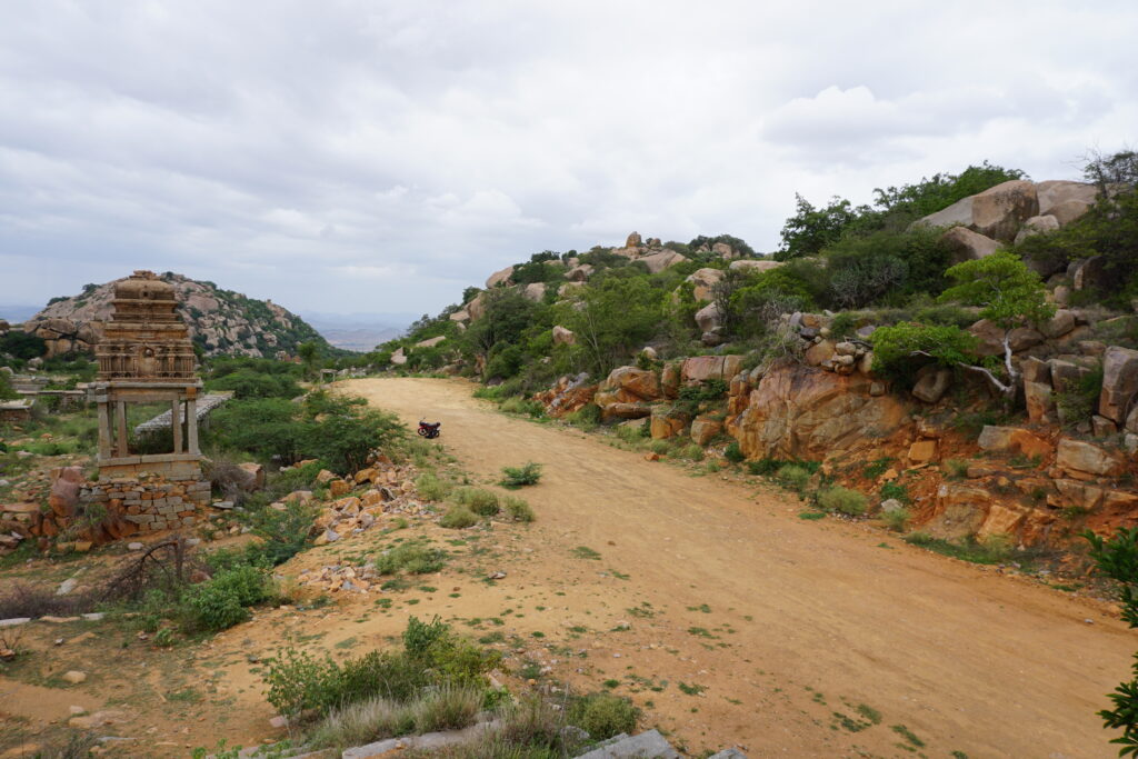 The road to Penukonda fort started from outside the town. As I crossed the farmlands, the road began to wind uphill. It took a few turns and abruptly ended in a dirt track. It looked like an under-construction road. I stopped, contemplating whether to proceed, when I saw two guys on a scooter coming from the opposite direction. If a scooter could make it, my bike certainly could. I started the engine and moved on. The road wasn’t as bad as I had imagined, but as it gained altitude, it became steeper and rougher. This was my first-ever venture into off-roading. I was a bit scared but thoroughly enjoying the adrenaline rush.