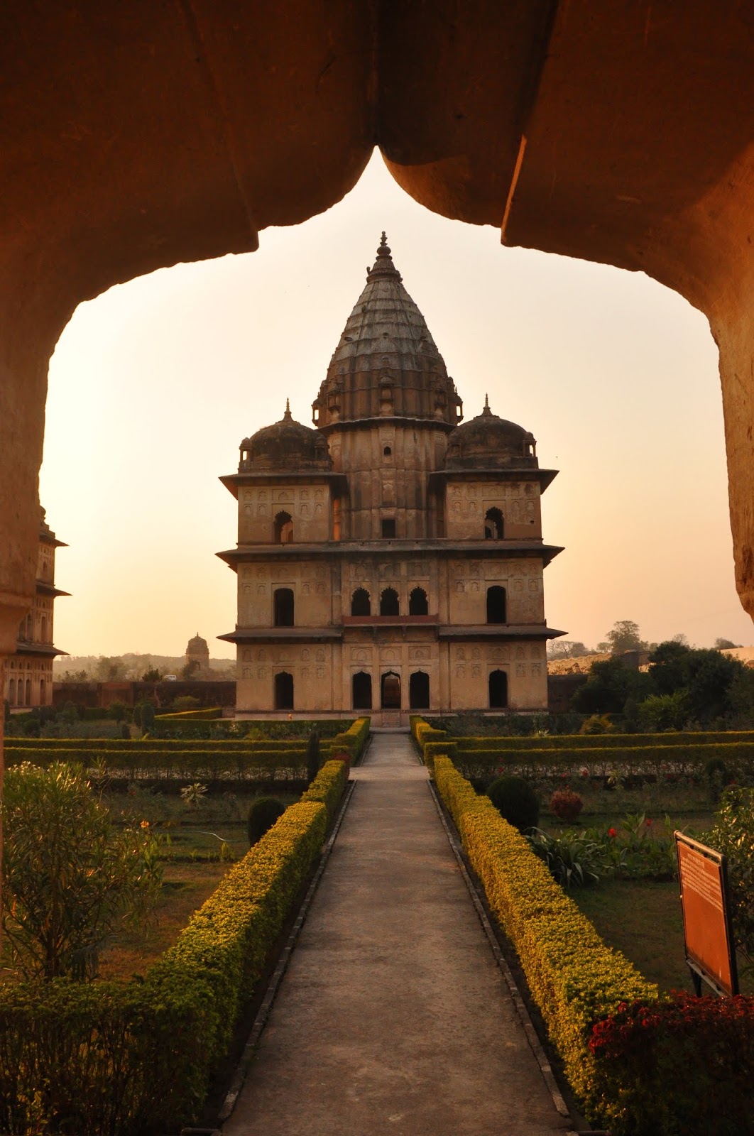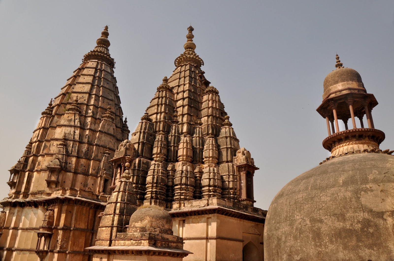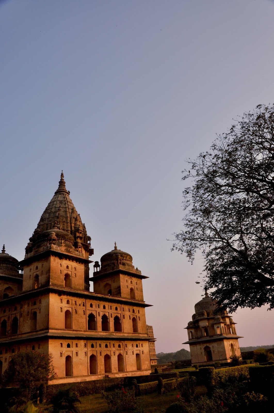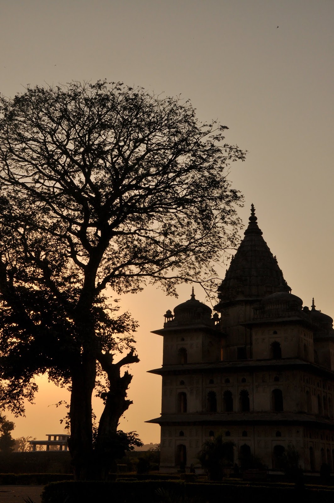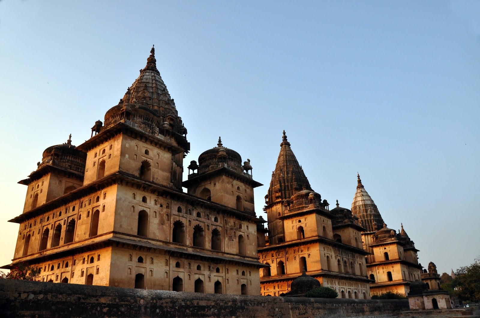 एक चौरसाकृती इमारत, चार कोनांवर चार लहान मनोरे, आणि मध्यभागी उंच असा मुख्य मनोरा, असे प्रत्येक छत्रीचे सर्वसाधारण स्वरूप होते. इथल्या स्थापत्यशैलीवर मुस्लीम शैलीचा जास्त प्रभाव जाणवत होता. संध्याकाळच्या सोनेरी उन्हात त्या छत्र्या चमकत होत्या. छत्रीच्या आत किंवा गच्चीवर जायला परवानगी नव्हती. तिथे दोन-चार फोटो काढतोय ना काढतोय तेवढ्यात सुरक्षारक्षक शिट्टी वाजवत आत येताना दिसला. माझा थोडासा हिरमोडच झाला. उगीच विश्रांती घ्यायला गेलो असं वाटलं. हिरमुसून मी बाहेर पडलो. बाजूलाच नदी वाहत होती. नदीवर सुंदर घाट बांधलेला होता. छत्र्यांचा परिसर आता बंद झालेला असला तरी बाहेरून सगळ्या छत्र्या पाहता येत होत्या. किंबहुना घाटावरूनच त्यांचे दृश्य अधिक सुंदर दिसत होते. मग काय, मी कॅमेरा काढला आणि सुटलो. अंधार पडेपर्यंत मनसोक्त फोटो काढले आणि शहराकडे यायला निघालो. येता येता रामराजाचे दर्शन घेतले आणि गेस्ट हाउसवर परतलो.