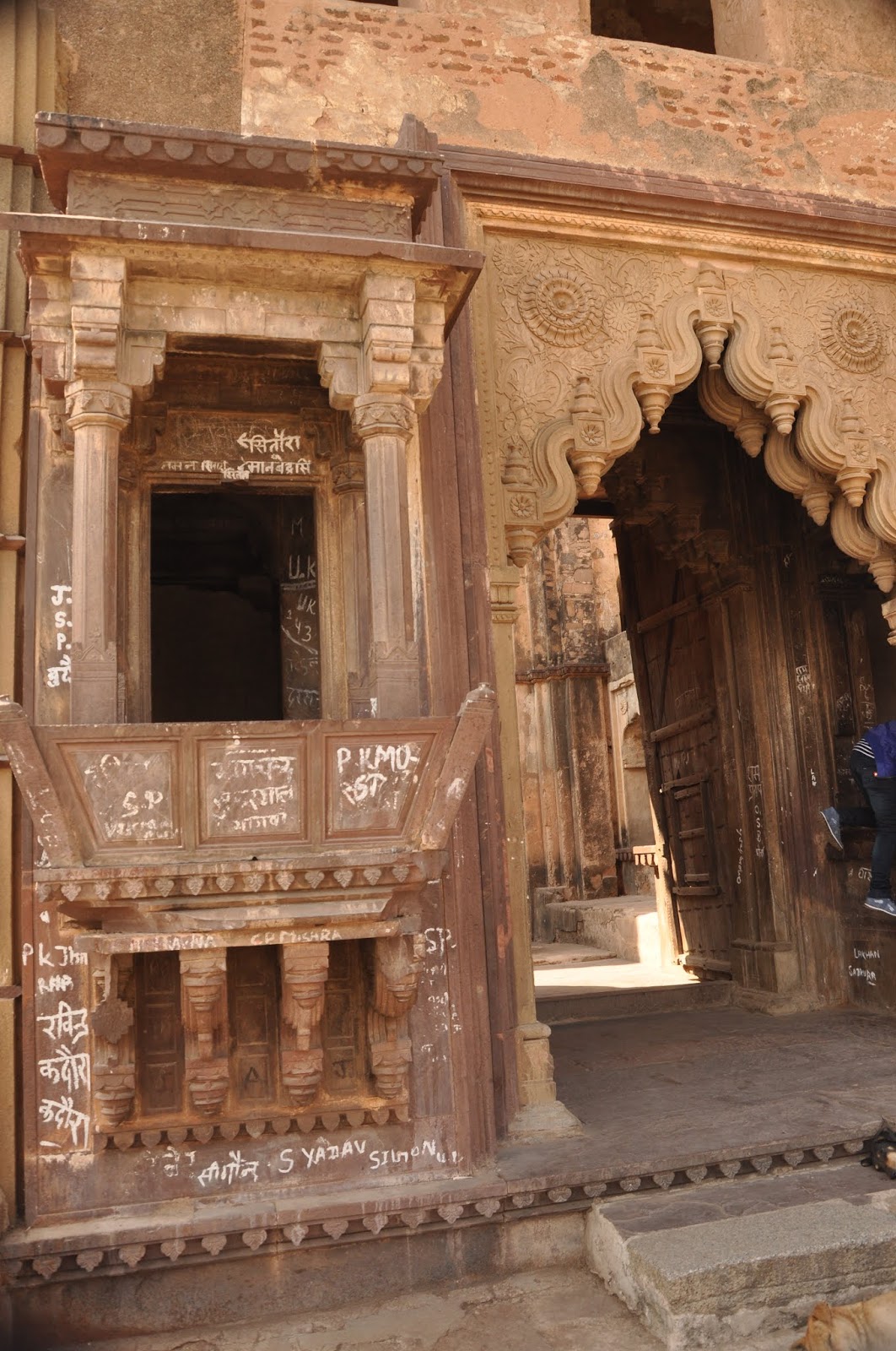 दमछाक करणाऱ्या पायऱ्या चढून आम्ही मंदिराच्या प्रवेशद्वाराजवळ पोहोचलो. कमळाच्या आकृतींनी सजवलेल्या प्रचंड द्वारातून आम्ही आत शिरलो. इथल्या भिंती स्थानिकांनी विद्रूप केल्या होत्या. ते बघून विषण्ण वाटले. तेवढ्यात एक पुजारी वजा गाईड धावत आला. गळ्यात कॅमेरे लटकवलेले दोन तरुण म्हणजे त्याला चार पैसे कमवायची नामी संधी वाटली असावी. गोल जिन्यावरून गच्चीपर्यंत नेतो असे म्हणून त्याने आम्हाला पटवले. आधी पाचशे म्हणत होता. शेवटी शंभर रुपये द्यायचे ठरले. मंदिरात फारशी गर्दी नव्हती. मंदिराच्या उंच दालनांमुळे हलका आवाजही घुमत होता. न हलणाऱ्या रामाच्या मूर्तीची कथा या गाईडकडून पुन्हा एकदा ऐकली.