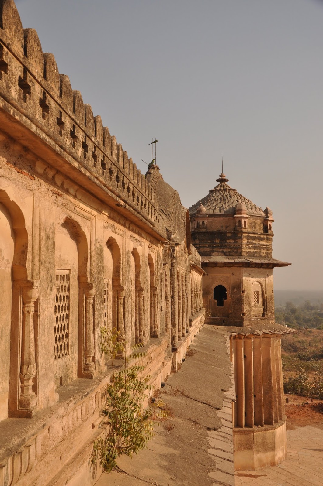 प्रियांकची जायची वेळ झाली होती. त्याच्यासोबत फिरताना वेळ मस्त गेला होता. त्याला फेसबुकवर अॅड करून त्याचा निरोप घेतला. साधारण साडेतीन वाजले होते. अजून नदीकाठच्या छत्र्या बघायच्या राहिल्या होत्या. पण दिवसभर फिरून फिरून पाय थकले होते. मग गेस्ट हाउसवर जाऊन थोडा वेळ विश्रांती घेतली आणि सूर्यास्ताच्या वेळी छत्र्या बघायला निघालो. या छत्र्या म्हणजे बुंदेला राजांच्या समाध्या होत. एकूण चौदा छत्र्या बेतवा नदीच्या काठाने बांधलेल्या आहेत. मी प्रवेशद्वारापाशी पोहोचलो तेव्हा पाच वाजत आले होते. सव्वापाचला तो परिसर बंद व्हायचा होता. तिथला सुरक्षारक्षक आत सोडायला तयारच होईना. मग गयावया करून फोटो काढून लगेच बाहेर येतो असे सांगून मी आत शिरलो.