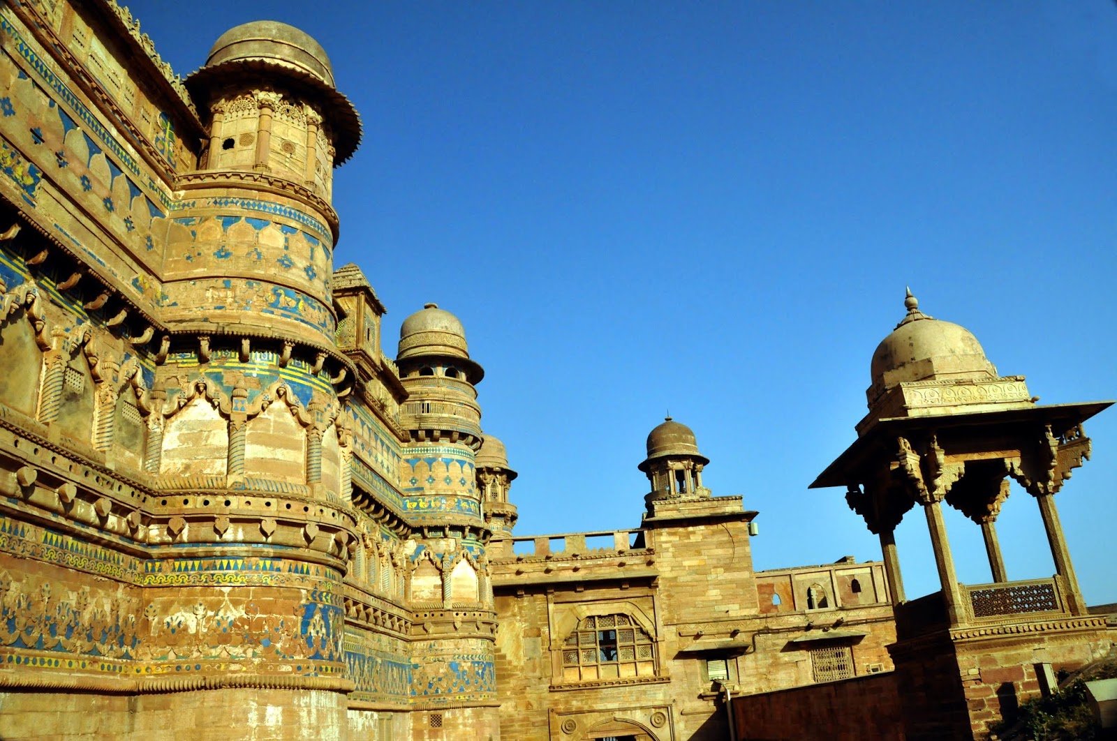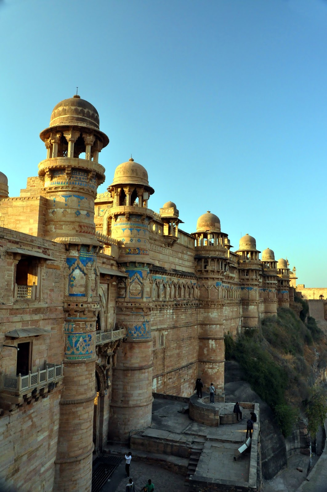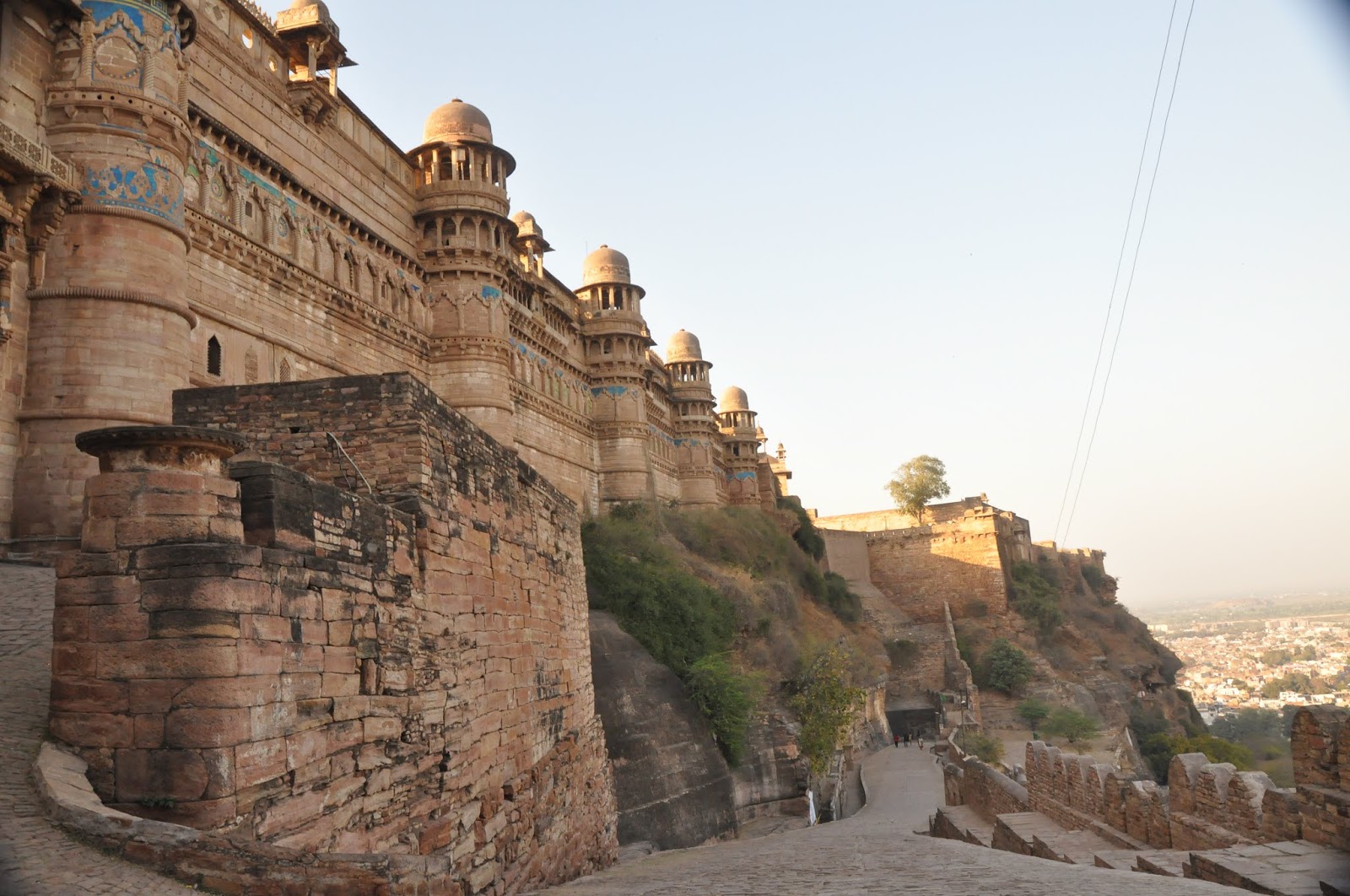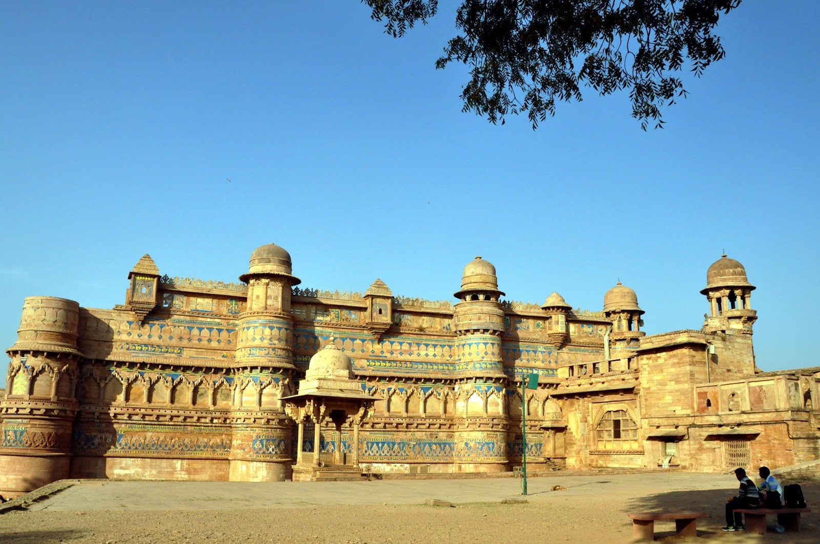 ठरल्याप्रमाणे आशिष त्याची स्कूटर घेऊन हजर होता. सुरुवातीलाच आम्ही गोपाचल पर्वतावरील ग्वाल्हेरच्या किल्ल्याकडे निघालो. हा किल्ला म्हणजे भारतातल्या काही सर्वात प्रेक्षणीय किल्ल्यांपैकी एक. मुघल सम्राट बाबरने म्हटल्याप्रमाणे हा किल्ला म्हणजे हिंदुस्तानातील किल्ल्यांच्या माळेतील एक मोती आहे! आम्ही स्कूटर पार्क केली आणि किल्ला भटकायला निघालो. किल्ल्याचा आवार प्रचंड मोठा होता. इथले प्रमुख आकर्षण म्हणजे मन मंदिर महाल. महालाचे नेटके बुरुज दुरूनच खुणावत होते. इथल्या भिंतीवर घडवलेले रंगीत नक्षीकाम आणि प्राण्या-पक्ष्यांच्या आकृती महालाचे वेगळेपण दर्शवत होत्या. आत शिरलो आणि एकापेक्षा एक सरस दालने दिसू लागली. मध्यवर्ती भागातले प्रांगण तर फारच सुंदर होते. प्रत्येक खांबावर आणि सज्ज्यावर नाजूक कोरीवकाम केलेले होते. महालातले गोल तळघर आणि तिथली ध्वनीक्षेपण यंत्रणा एकदमच इंटरेस्टिंग होती.