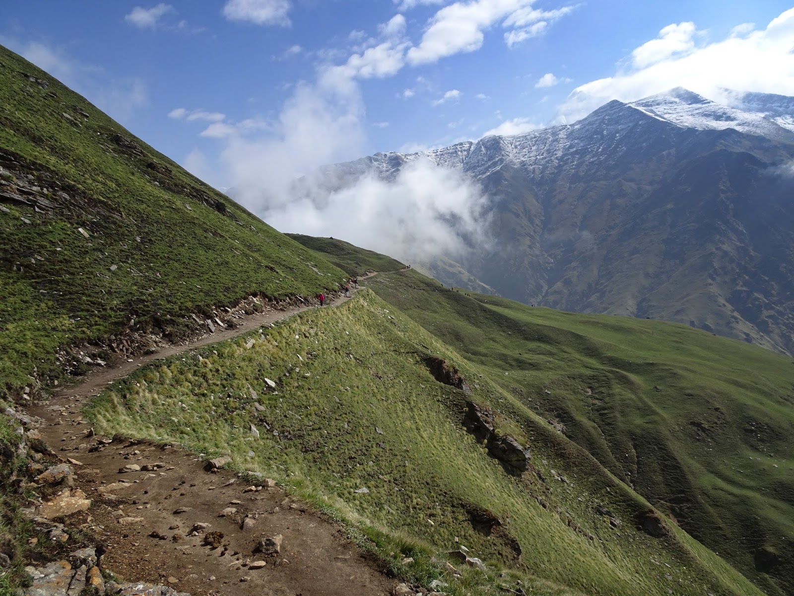 बेदिनी बुग्यालचा पठारी प्रदेश संपून तीव्र उतार सुरु झाला |