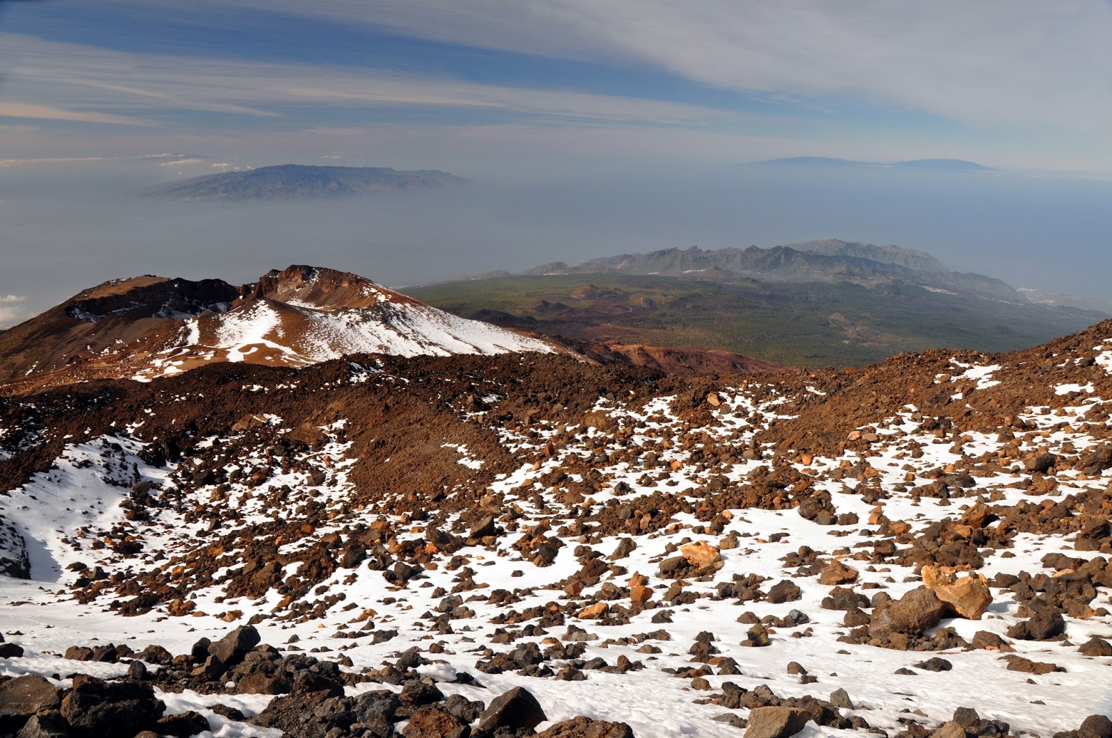 टेईडं शिखरावरून दिसणारा विस्तृत प्रदेश- दूरवर ला पाल्मा आणि ला गोमेरा बेटे दिसत आहेत |